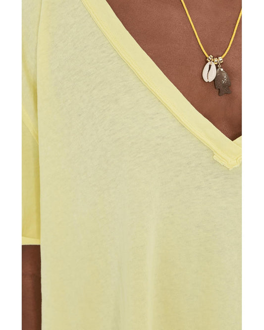 Amaryllis Apparel Velvet Ruched Shoulder Tee