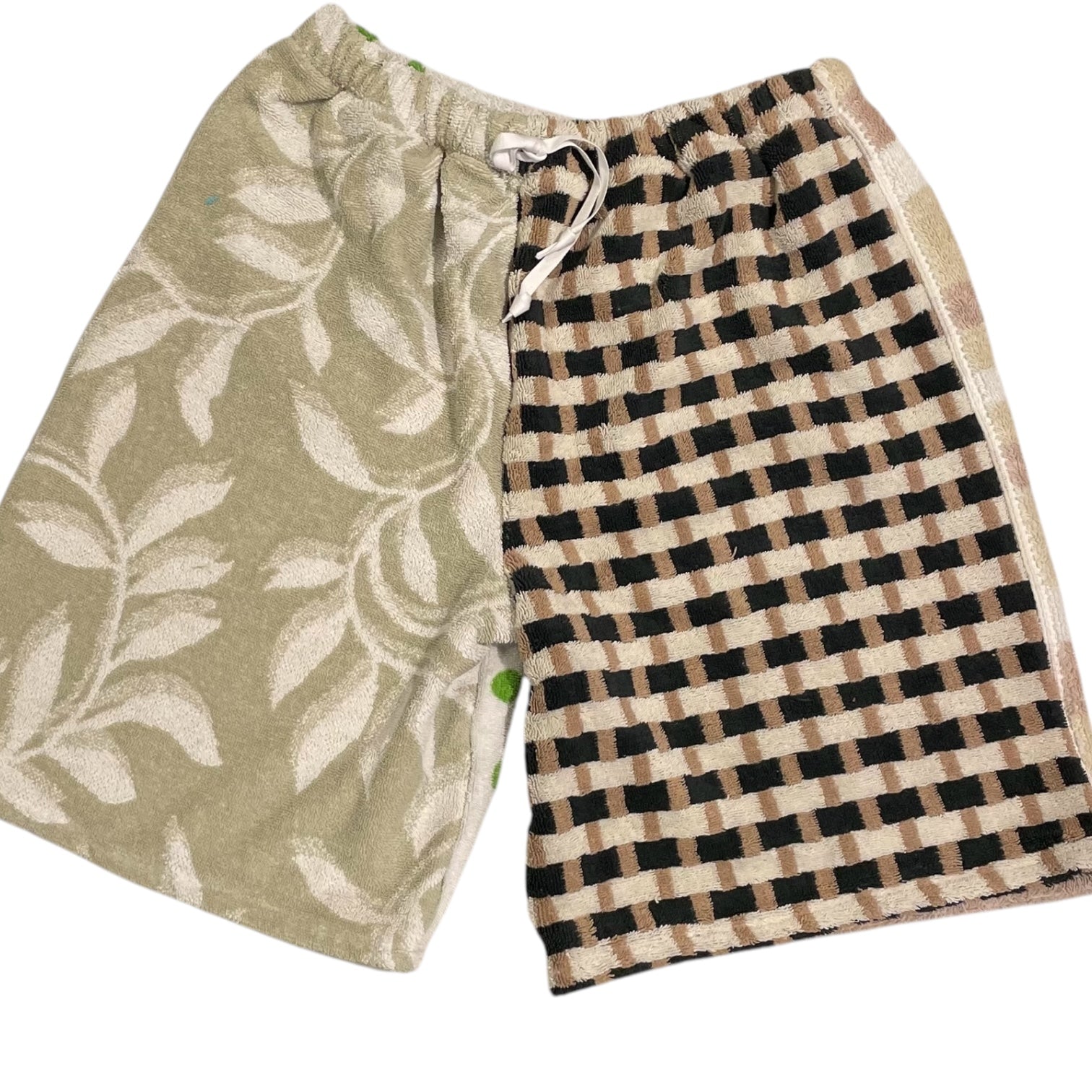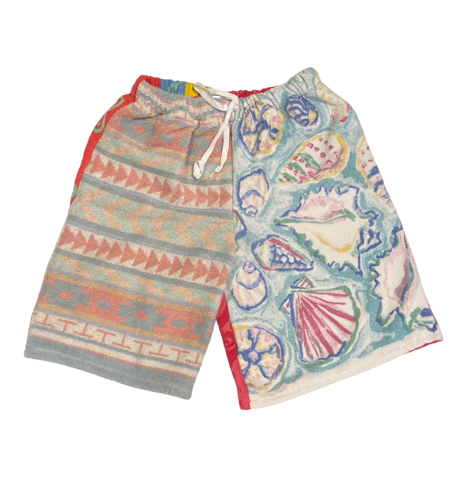 Authentic Vintage and Dead Stock towels and terry cloth reworked into an elastic waistband athletic short. Each piece is one of a kind. Sizing: SM 26"-30" ML 30"-36"