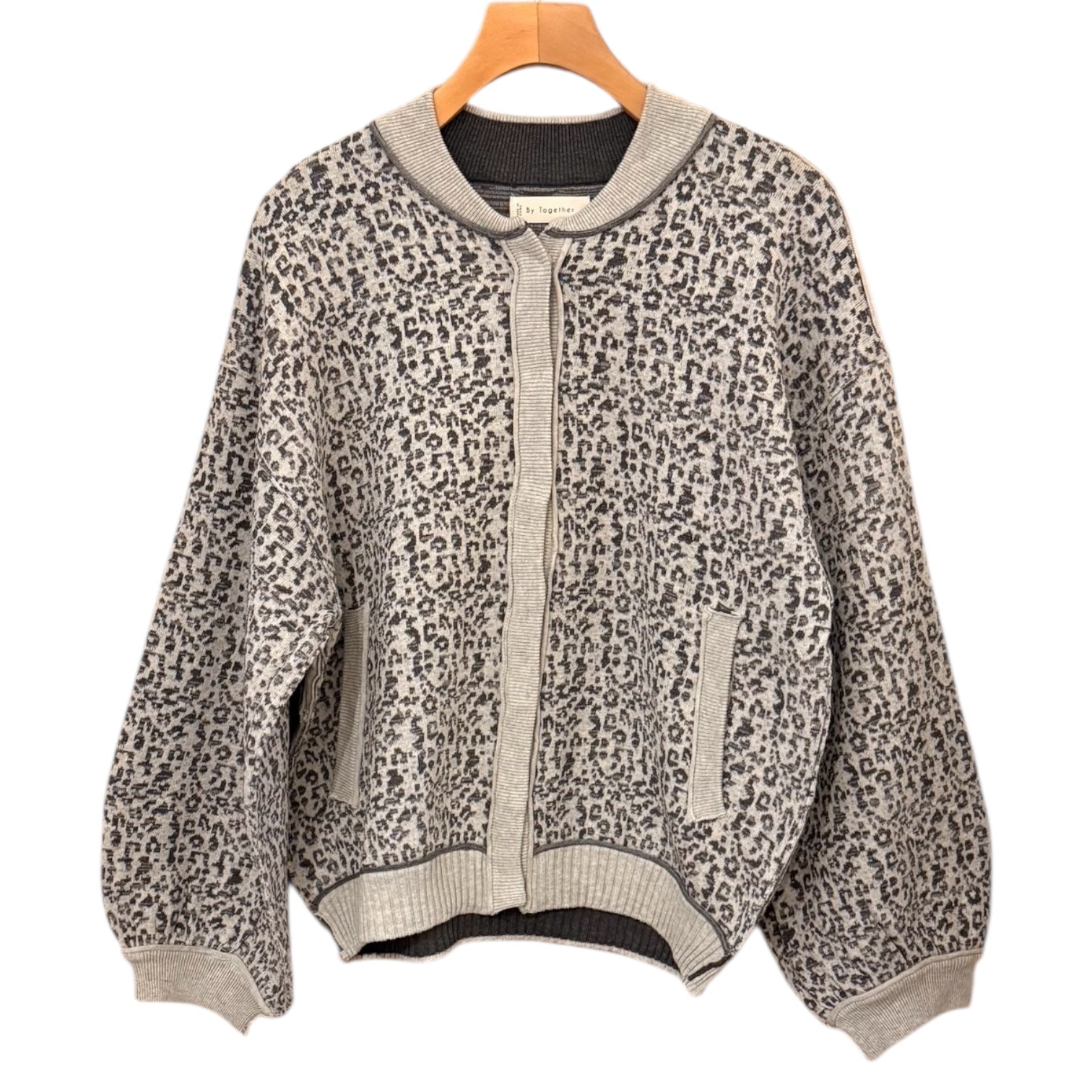 Knit Sweater Cotton Nylon Cheetah Print Ribbed Band Round Neck Long Sleeve Cardigan With Front Snap Button Closures And Front Pockets