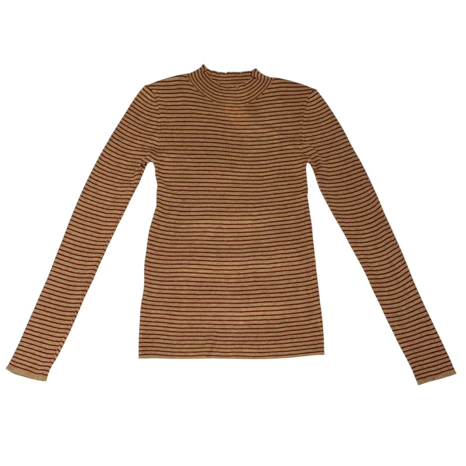 Knit Sweater Acrylic Wool Striped Mock Neck Long Sleeve Top