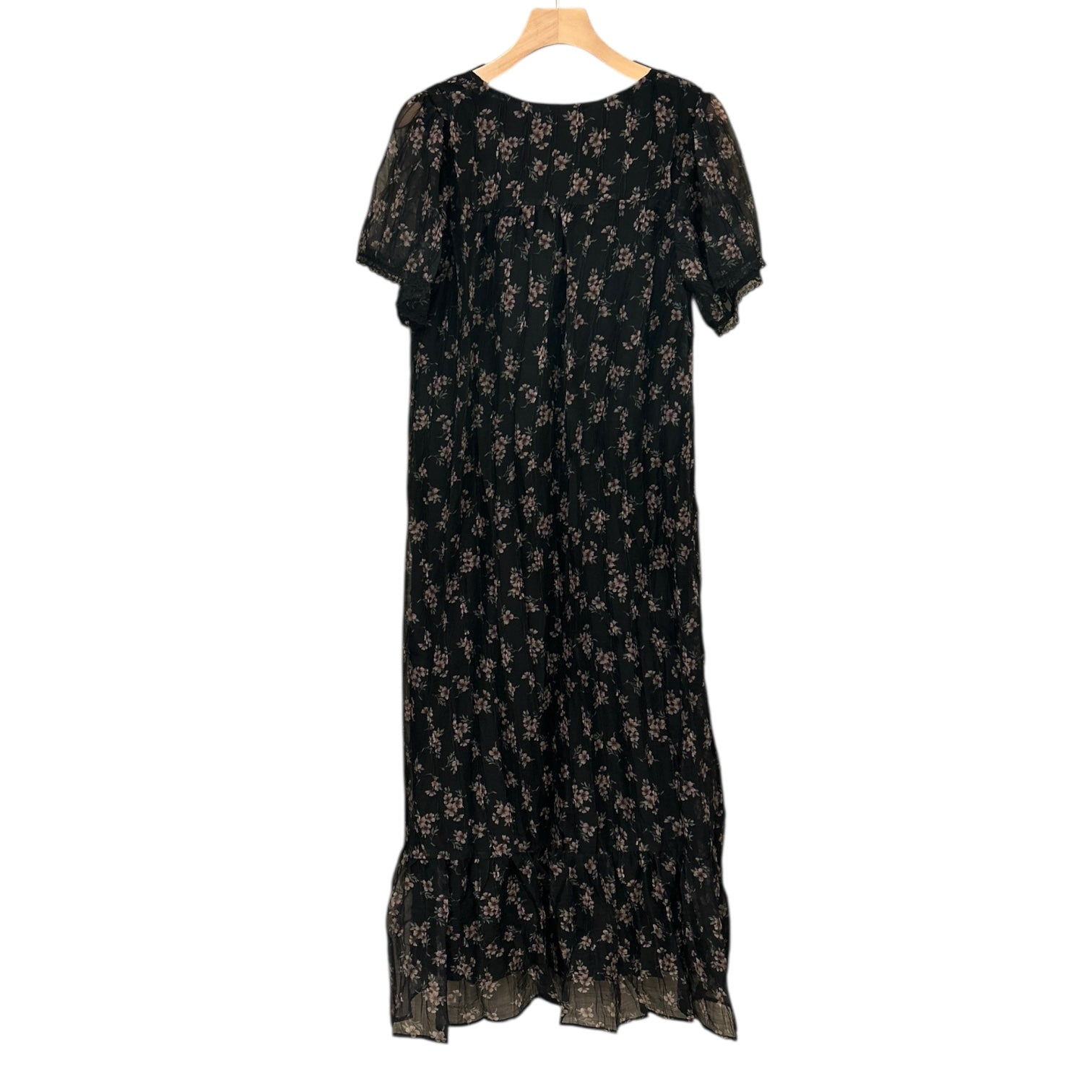Woven Polyester Floral Print Plunged V-Neck Short Sleeve Flare Midi Dress With Rayon Lining