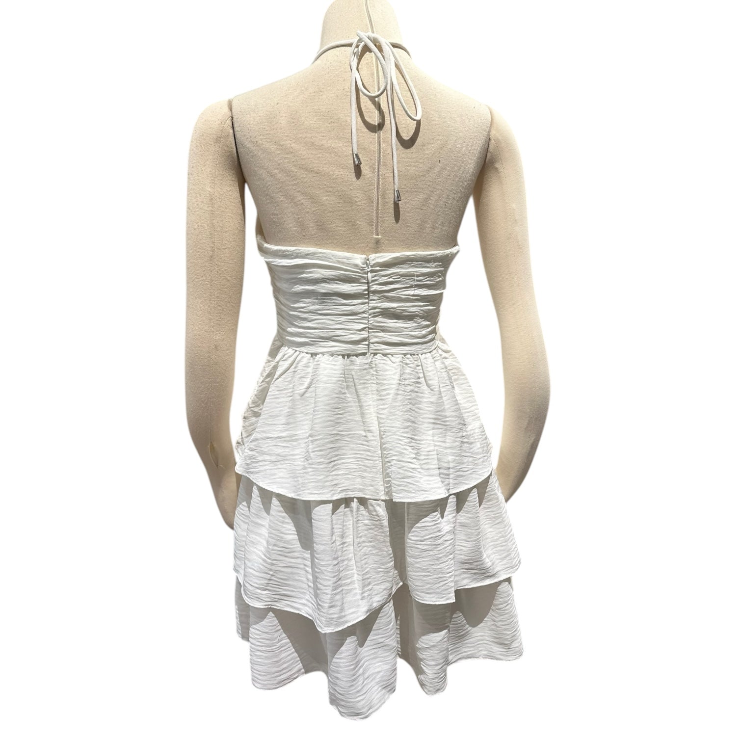 Expertly crafted, the Day + Moon Halter Mini Dress features a halter neckline and 'V' notched chest for a touch of sophistication. The ruched tiered design adds dimension to this flowy dress, making it perfect for any occasion. Elevate your style with this must-have piece.