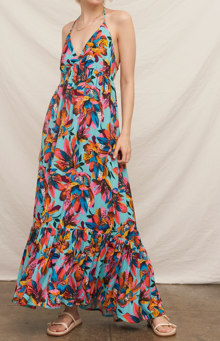 En Creme Halter Floral Maxi Dress