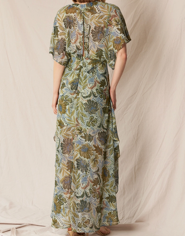 V-Neck Printed Gauze Maxi Dress 100% Polyester | Lining: 100% Polyester