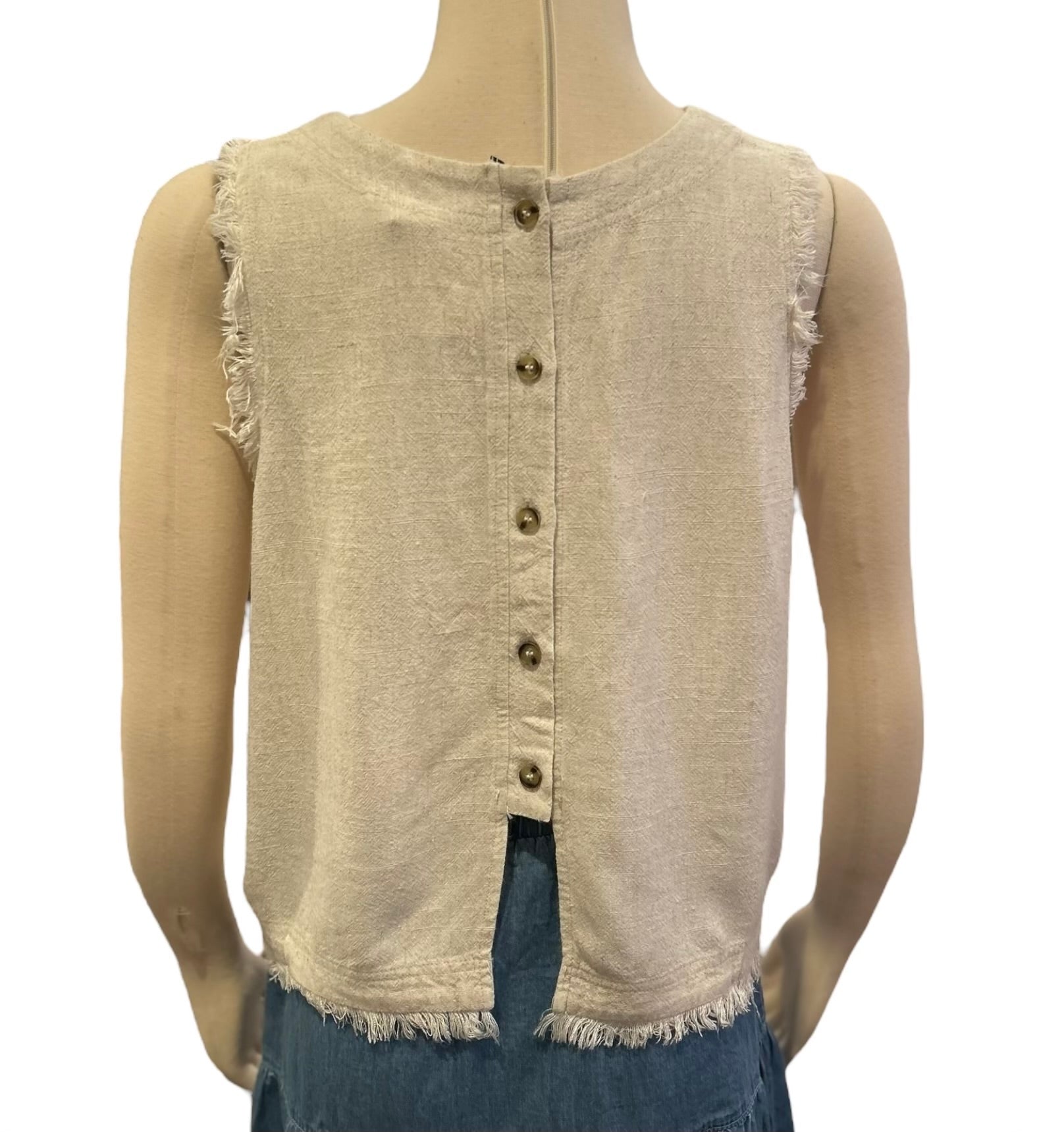 Linen Shell tank with back buttons