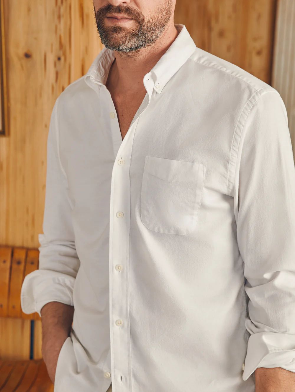 An exclusive take on this everyday staple features Supima cotton yarns and a bit of stretch. Airy and not too stiff, it's ideal for the office or out with friends.