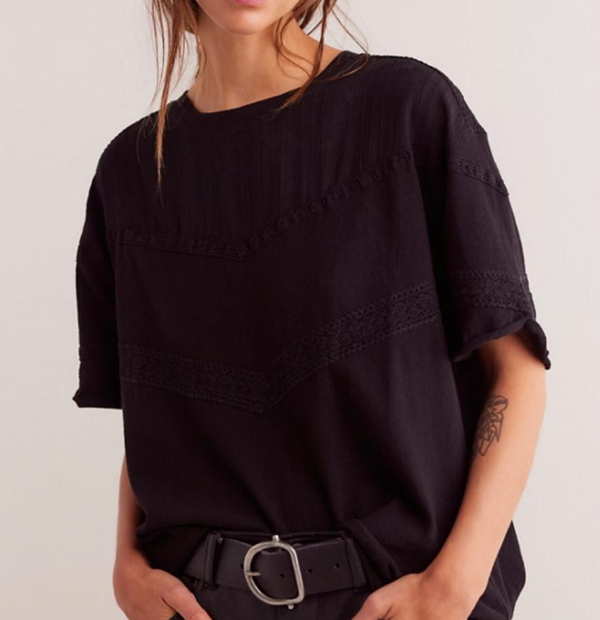 An oversized T-shirt from Free People has just the right amount of slouch, while contrasting textures like pointelle and lace add unique finishing touches.