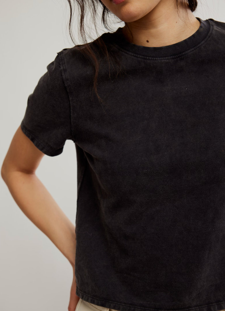 Boost your wardobe-building options with a perennial cotton T-shirt that's fashioned with a bit of exposed seaming for a textured look.