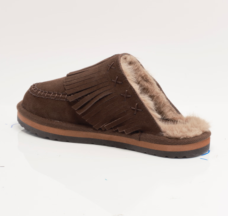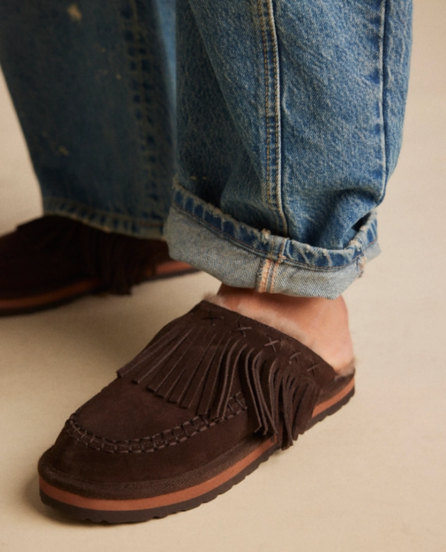 Slip into cushy comfort with these so cozy mules by FP Collection featuring fringe uppers for an elevated touch.