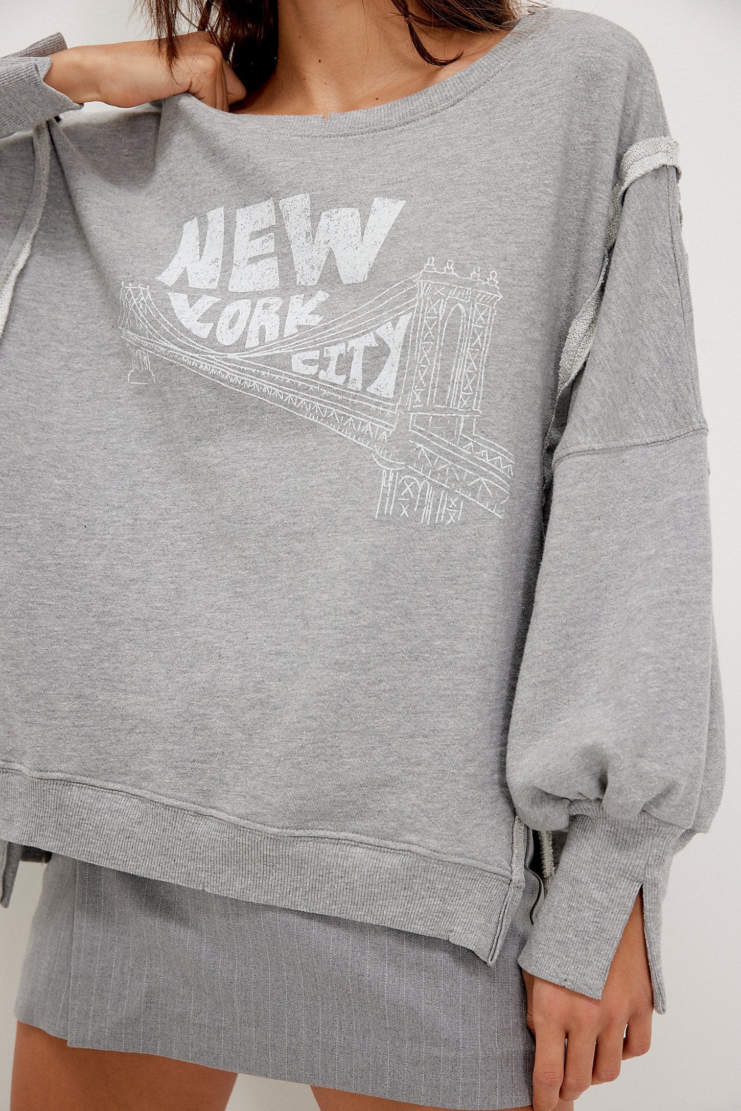 Features: Scoop neckline, dropped shoulders, side slits at bottom, ribbed hems, defined seaming