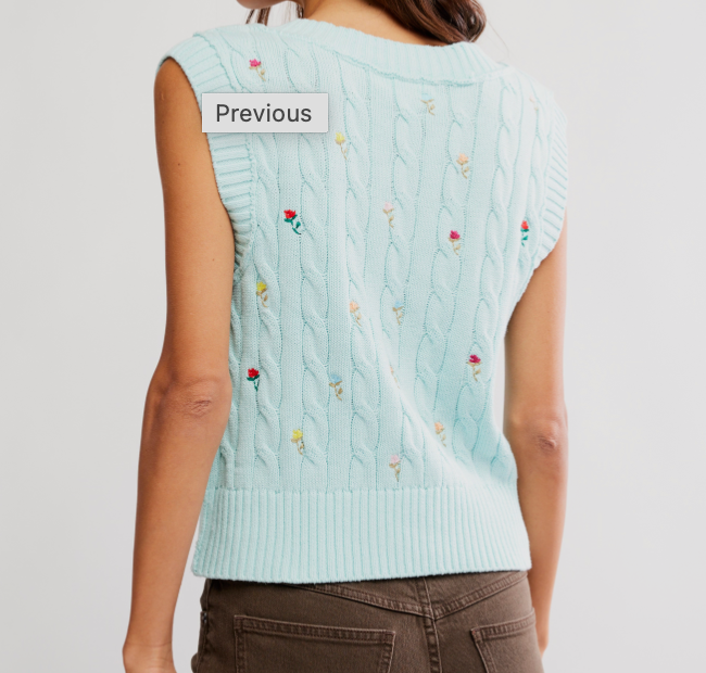 It's all in the details with this adorable cable knit vest adorned with delicate floral embroidery.
