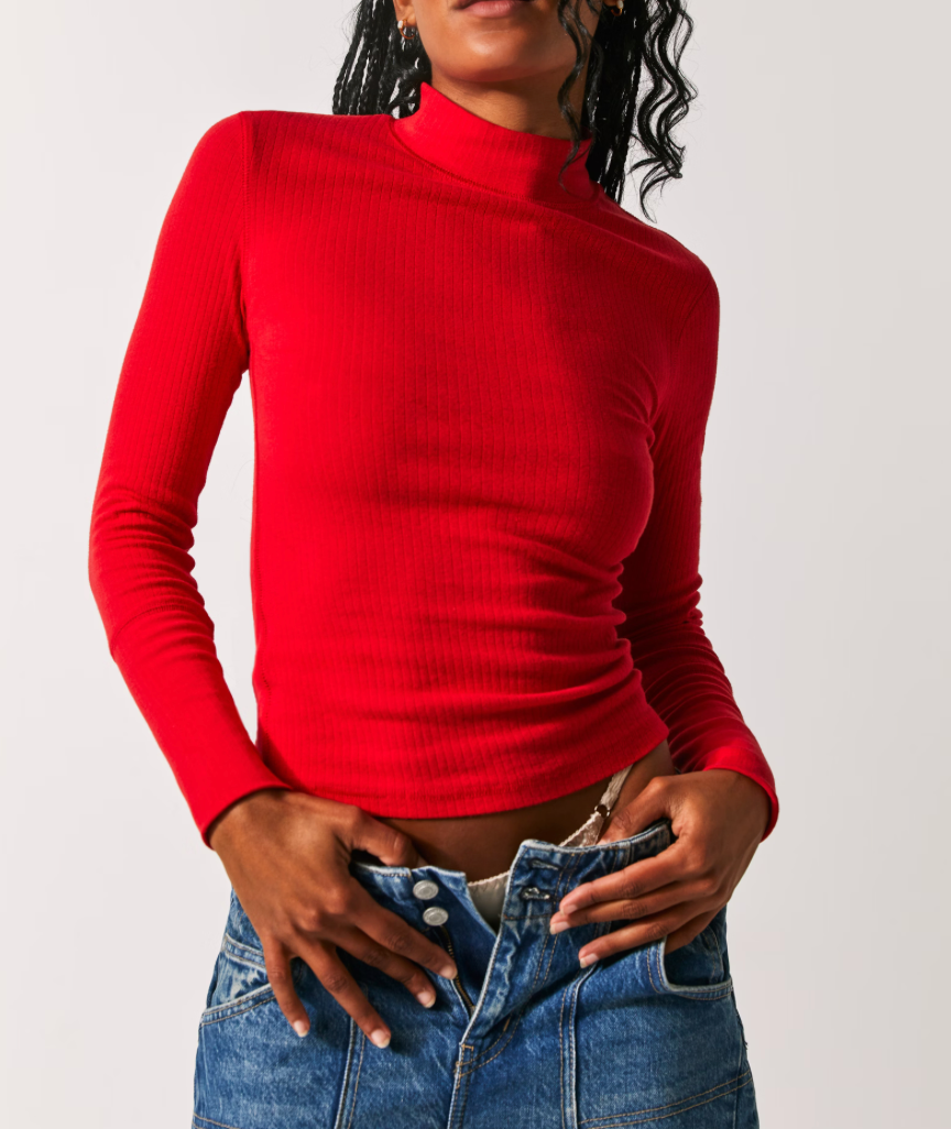 Long sleeve layering top with short turtleneck. 93%cotton, 7%elastine