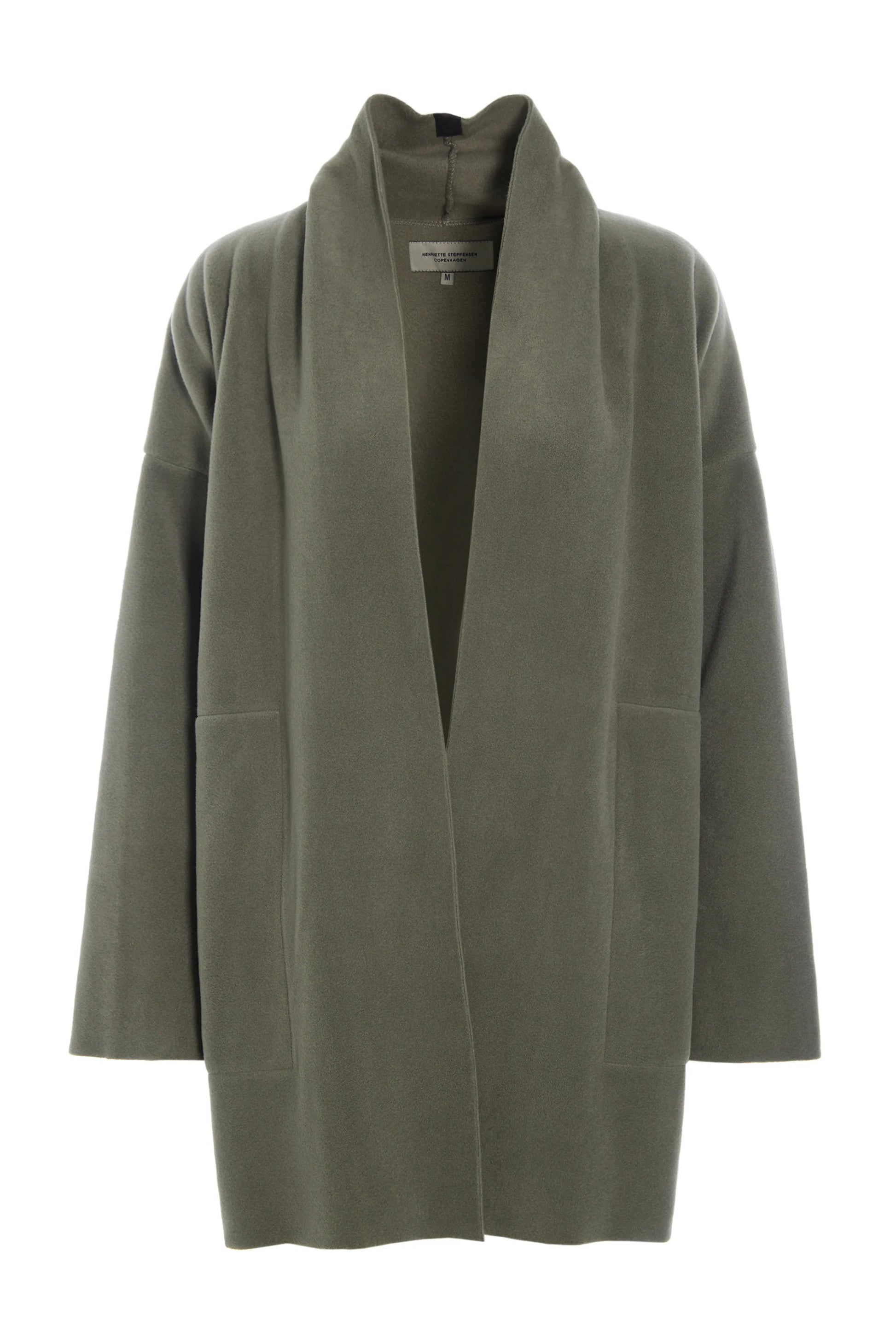 It features a shawl collar, practical pockets, and the signature grosgrain band that reflects the DNA of Henriette Steffensen Copenhagen.