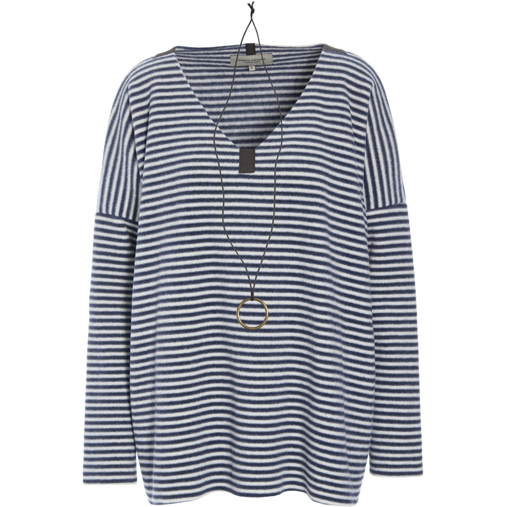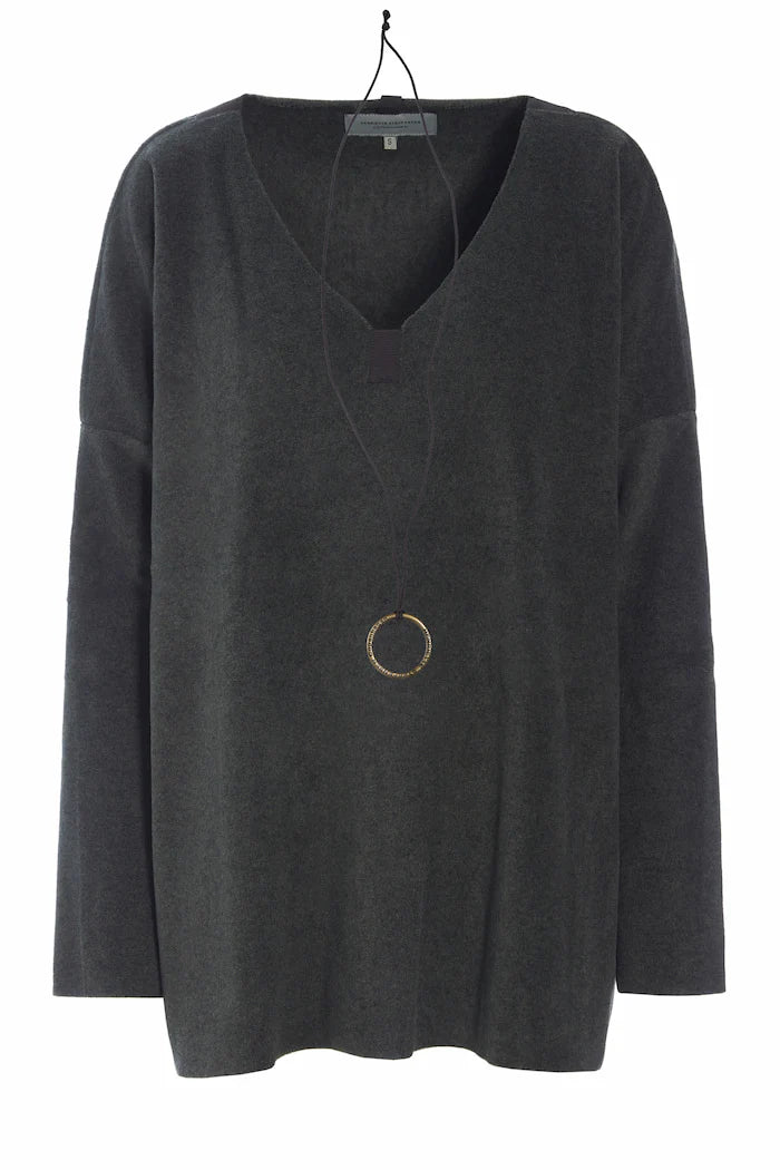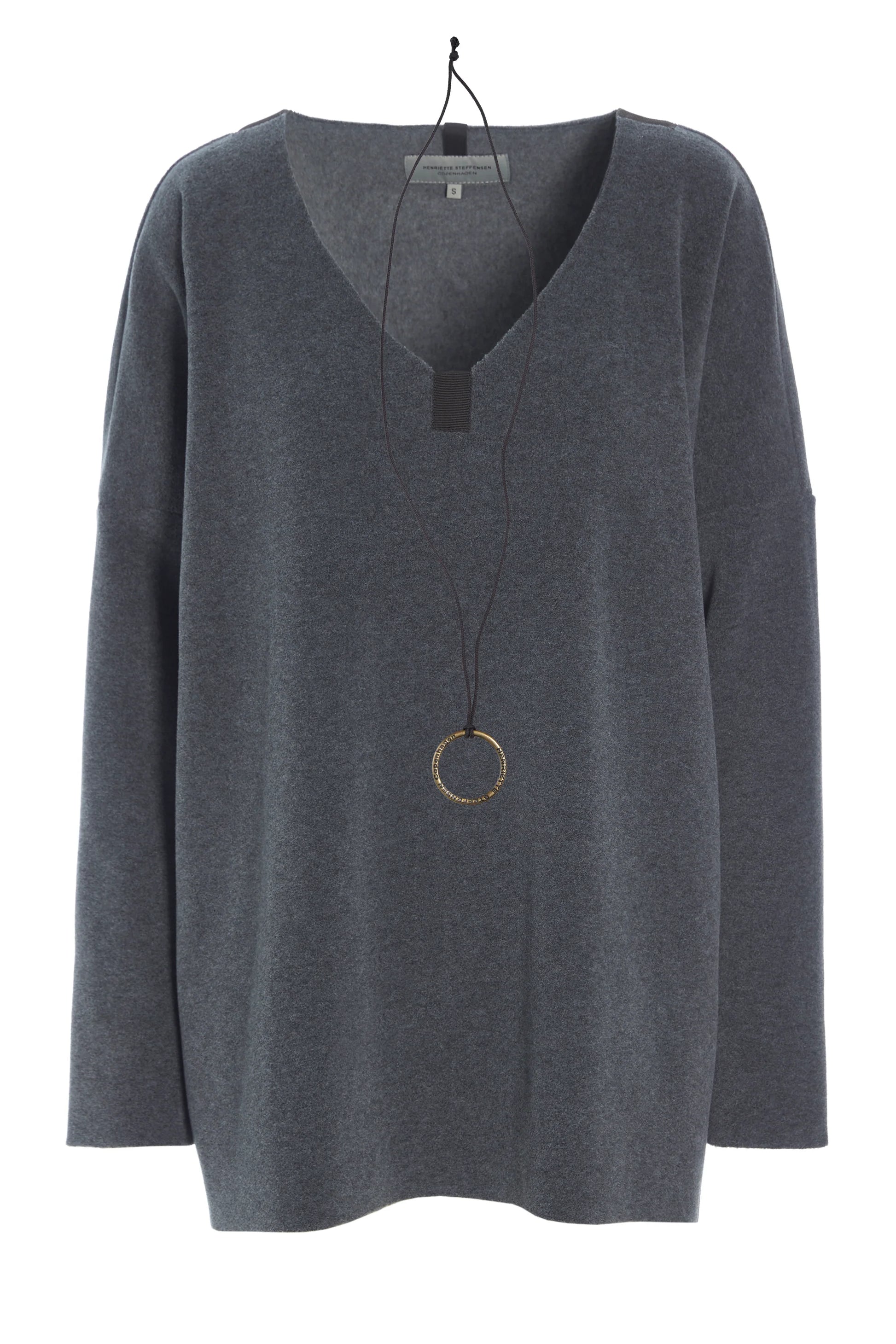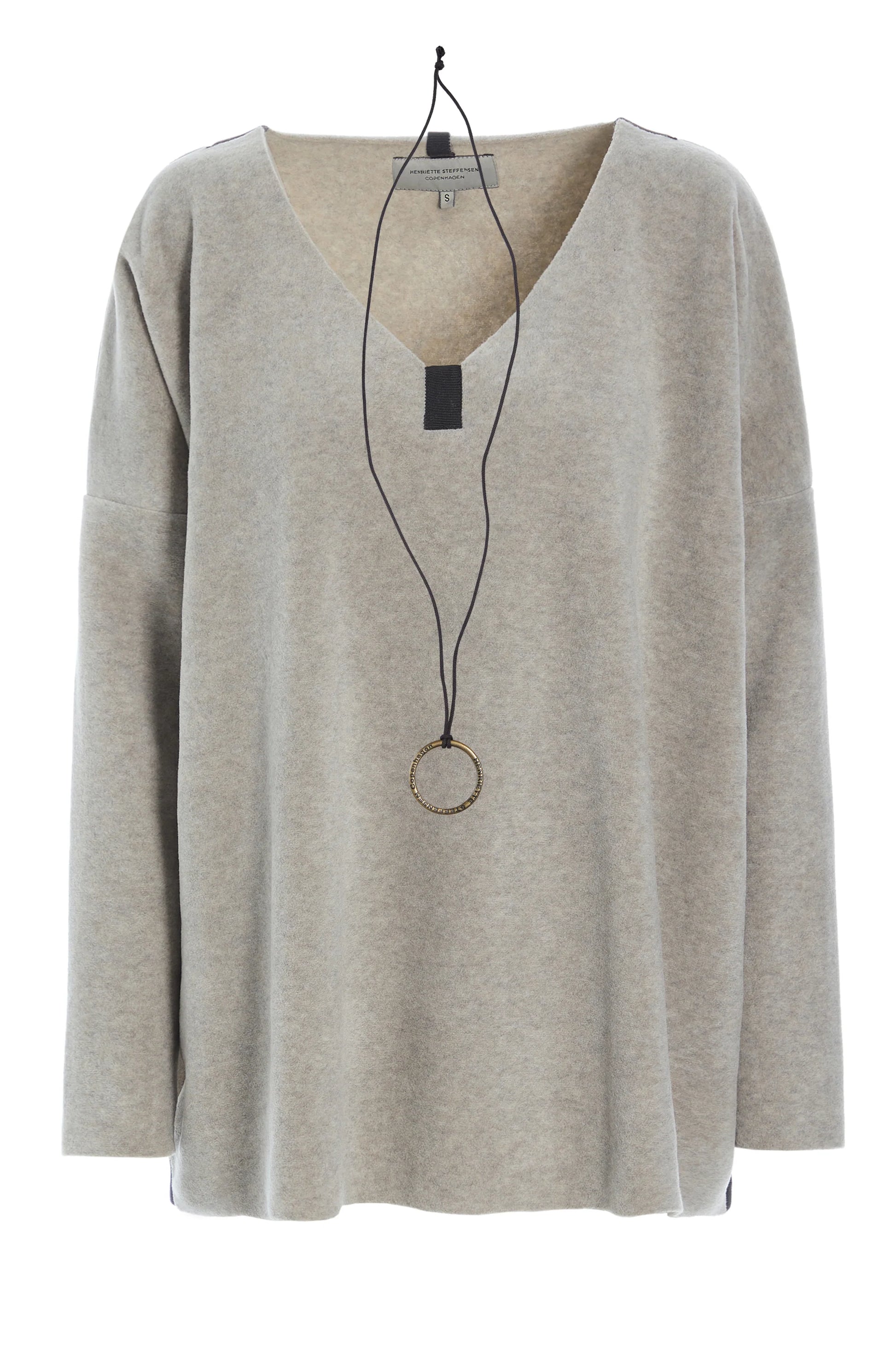 Oversized pullover with V-neck, grosgrain band details, and our signature necklace.