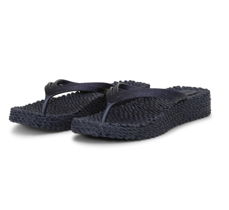 Bring a touch of sparkle to every step with these platform flip-flops โ a joyful fusion of comfort, height, and shimmer. The glittery double straps catch the sunlight, while the elevated sole subtly enhances your silhouette. Crafted from air-infused rubber, they feel featherlight and flexible, making them the perfect choice for long summer days. Whether you're barefoot on the beach or strolling through the city, these flip-flops combine easy elegance with everyday wearability.