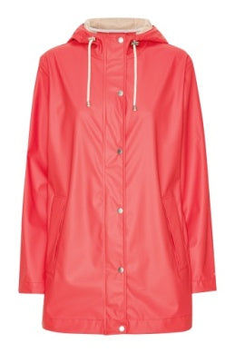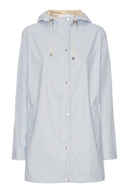 This new contemporary wardrobe staple is a straight-fit raincoat in durable lightweight-wearing rubberized PU coated waterproof fabric. Expertly made, itโs tailored with welded seams for complete protection against the rain and with a recycled tricot backside for comfort. The drawstring hood with string in cotton look and under-arm eyelets add ease of movement and comfort in uncomfortable weather. This quality offers weather protection with a waterproof rating of 5000 m