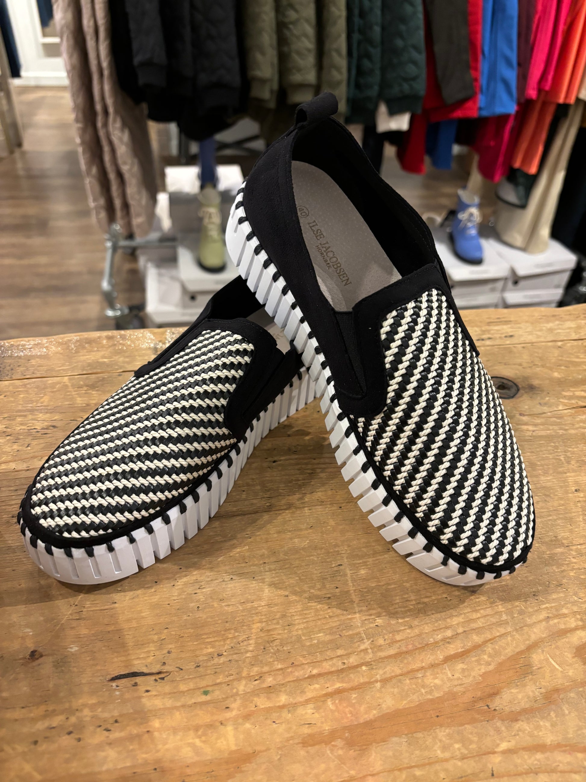 The Ilse Jacobsen Tulip 3876 shoe features a unique blend of microfiber and textile, creating a fresh take on the classic design. Its flexible outsole made of natural rubber and elastic panels ensure comfort and durability. With a glue-free upper construction, this shoe effortlessly combines form and function. A must-have for any stylish and practical wardrobe.