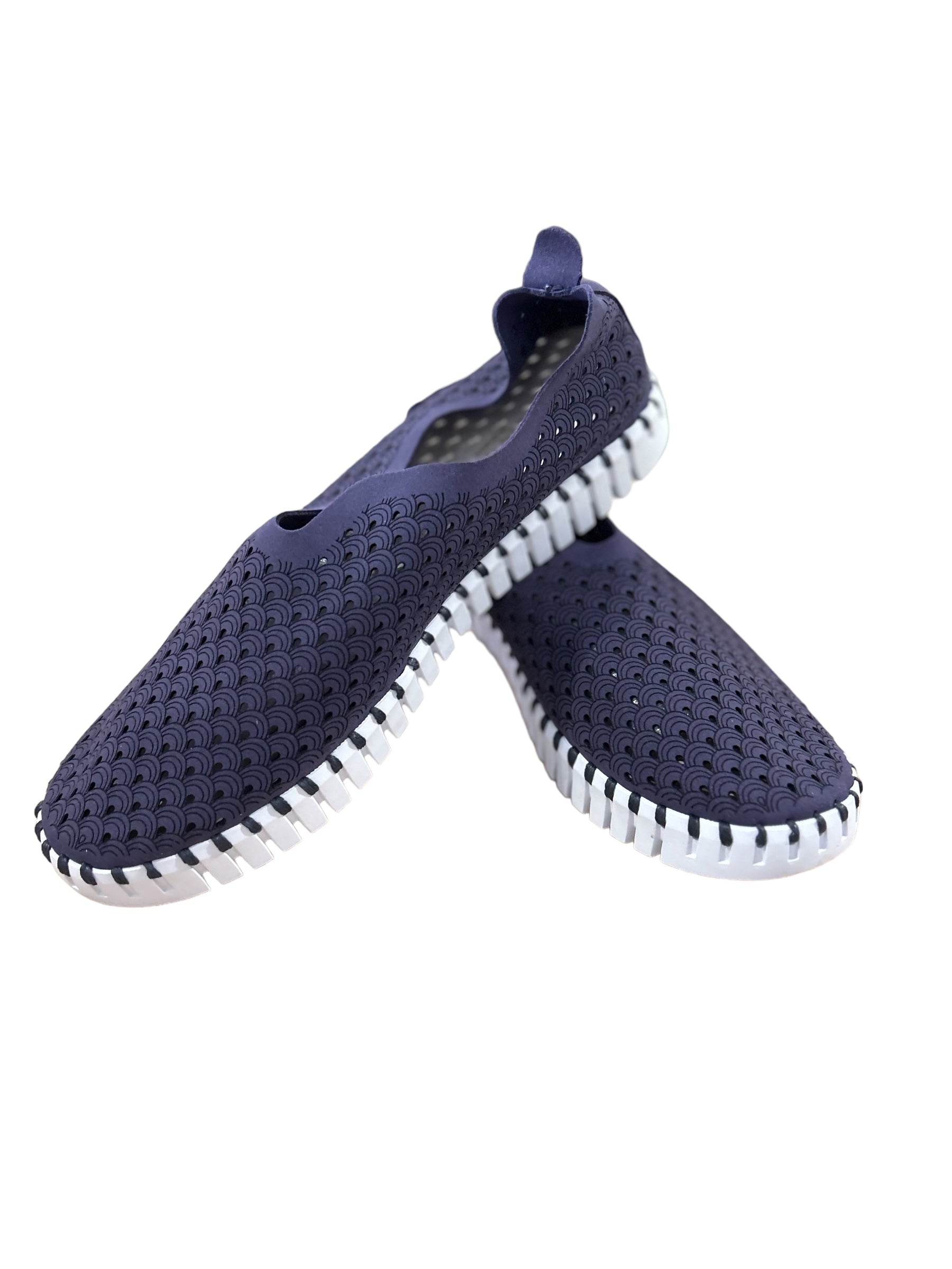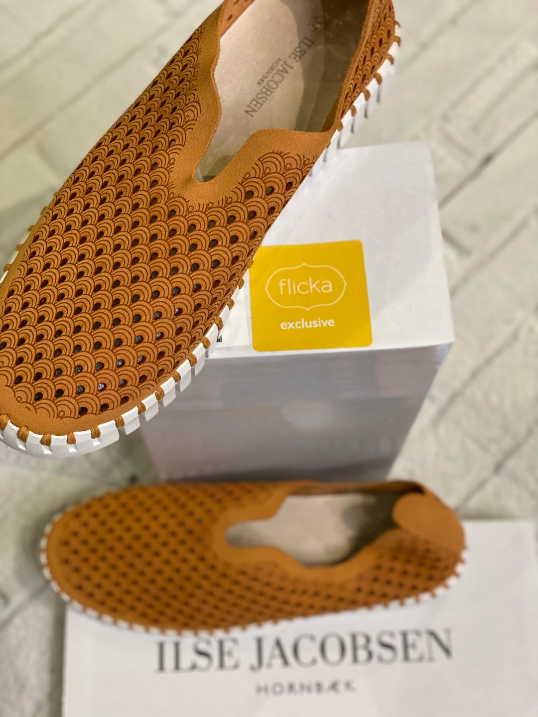 Bestselling tulip shoes! Meet the iconic Tulip Shoe by ILSE JACOBSEN HORNBÆK. Crafted with an upper of recycled microfiber and a captivating laser-cut pattern, these shoes perfectly blend style and eco-friendly design. The iconic Tulip outsole, made from 75% natural rubber and 25% recycled rubber, is expertly stitched with matching recycled thread, entirely glue-free. Inside, the pig suede-lined insole provides remarkable comfort through added padding and support. With a variety of color options to choose from, these shoes are the ideal fusion of fashion and environmentally-conscious choices. Elevate your footwear collection with this iconic and comfortable choice.