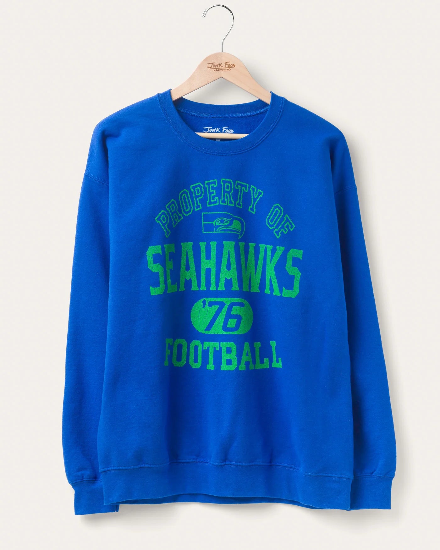 Rep Seattle like you just scored it at a vintage flea. This Seahawks crew fleece delivers old school athletic vibes with bold, cracked graphics and that perfectly broken in feel. Cozy, classic, and full of Seahawks pride this one’s made for true fans who like their football gear with attitude.