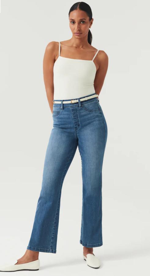Designed with premium stretch denim, high-rise coverage and hidden core shaping technology, this pull-on jean features a flattering kick flare leg.