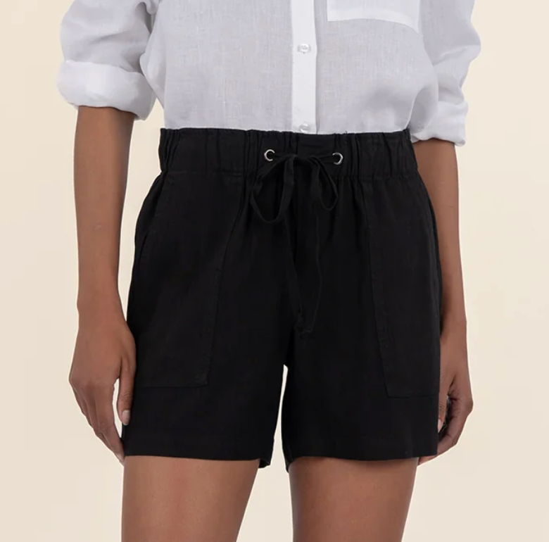 - Add a breath of fresh air to your casual style in these lightweight linen blend shorts topped with a drawstring waist. Hi rise short