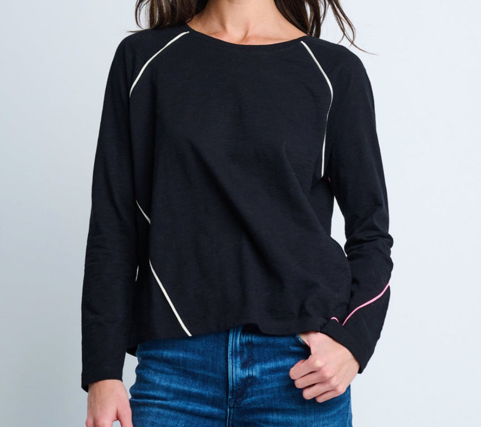 An everyday essential with a modern twist, the Piping Hot Tee features contrast piping and a soft raglan sleeve. Crafted in 100% cotton slub with a relaxed fit, it’s made to layer or wear solo from season to season. A long-sleeve crew silhouette keeps it polished yet easygoing.