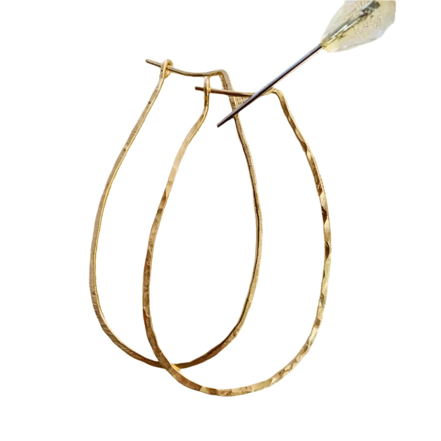 Graceful and lightweight, these are the perfect everyday hoop. Handmade from hammered 14k Gold Fill. 2” x 1.25”