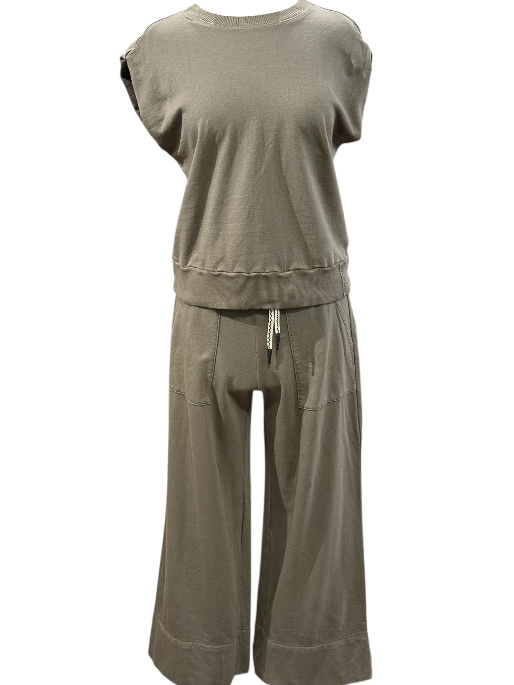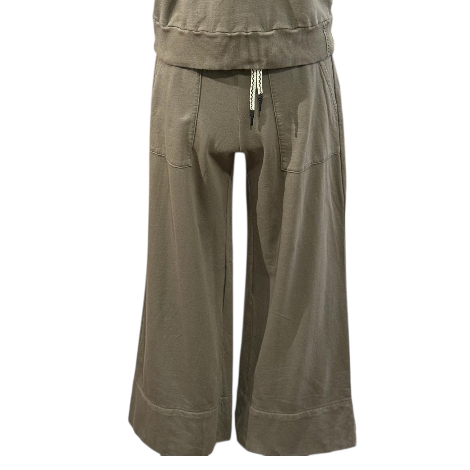 Blend an easy fit with soft 100% cotton and you’ll get these pants. Hugging your body in all of the right places, this cropped wide leg pant features an elasticized high-waist and drawstring along with front patch pockets. Quick to become your go-tos, these pants are a perfect match to the Mariah Bubble or Kit V-Neck Sweatshirts.