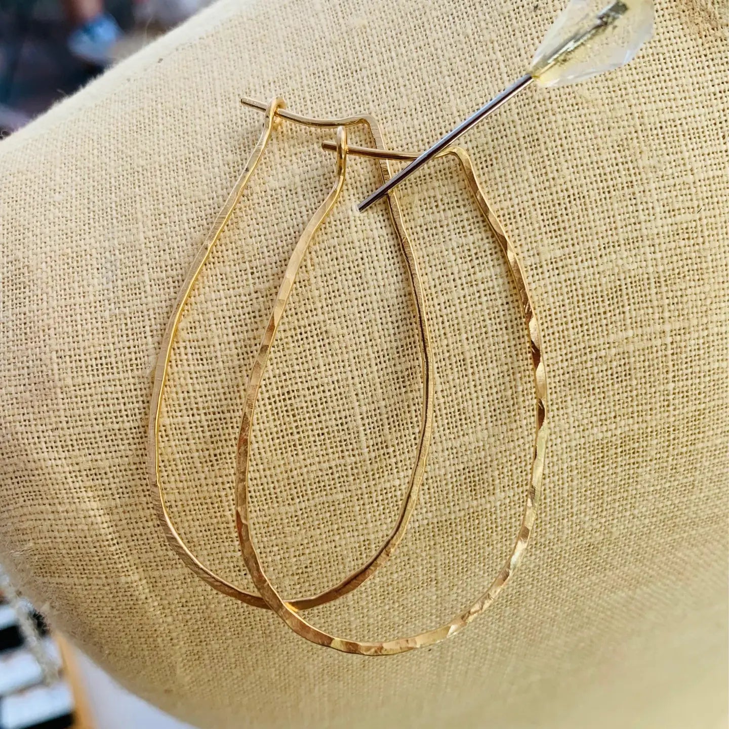 Graceful and lightweight, these are the perfect everyday hoop. Handmade from hammered