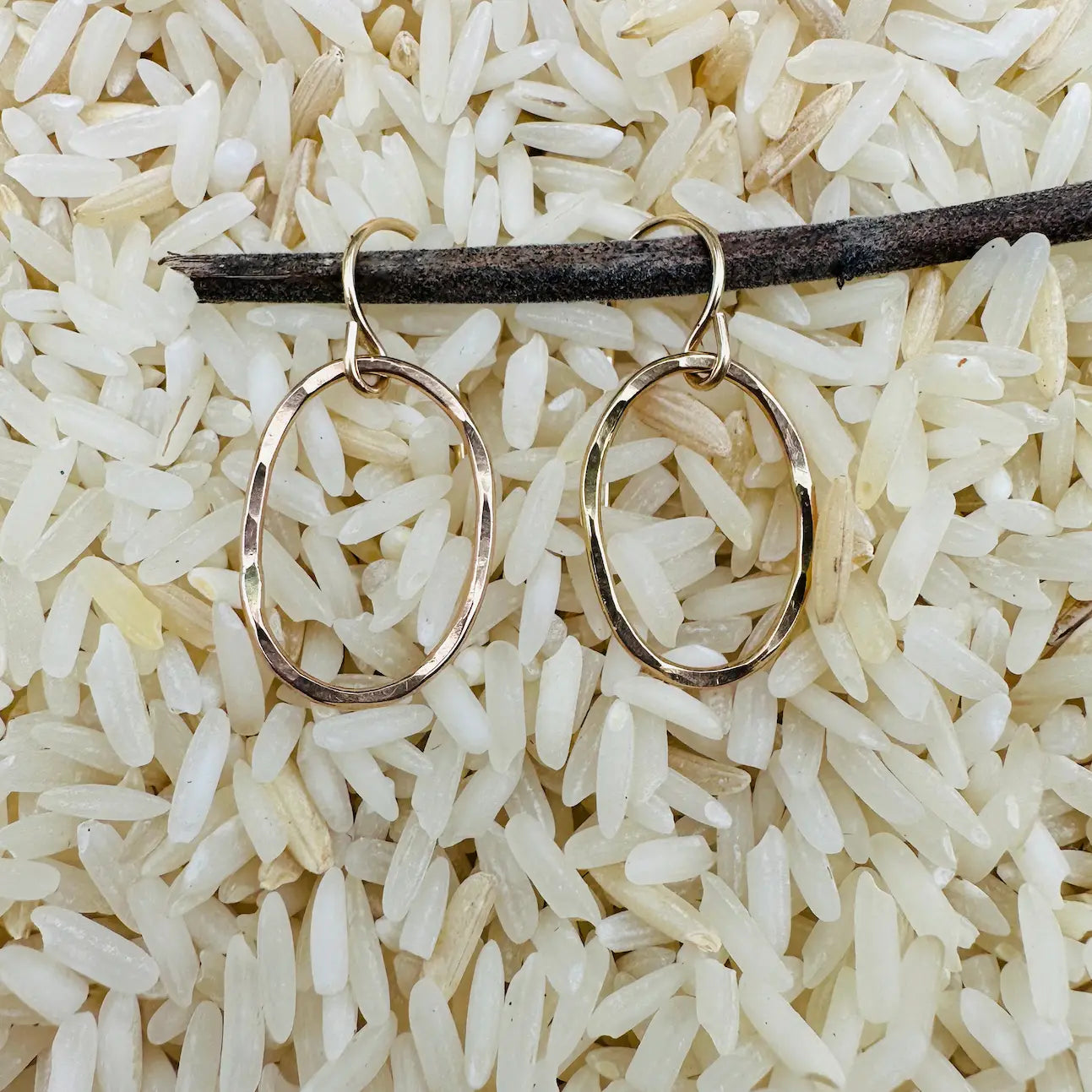 Featherlight organic pods of hammered 14k Gold Fill or Sterling Silver. These breezy earrings are sway softly from french wires and come in 4 sizes, from dainty to bold. (1โ) pods. Flow hoops are organically formed and pairs will vary slightly in shape. They are sisters, not twins