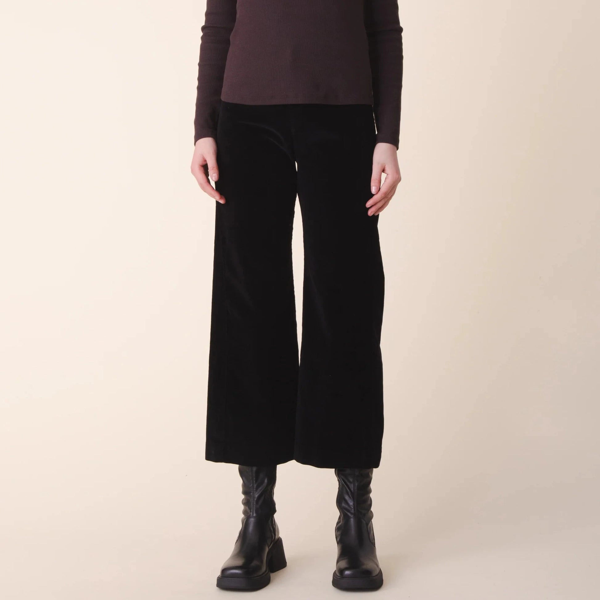 The corduroy version of our most popular pant in a new and refreshed color palette. A mid-rise flared pant composed of high-stretch corduroy offers a shot of color to a classic silhouette. Two back darts for shaping and a double layer clean front suggest a minimal look that is also ideal for layering.