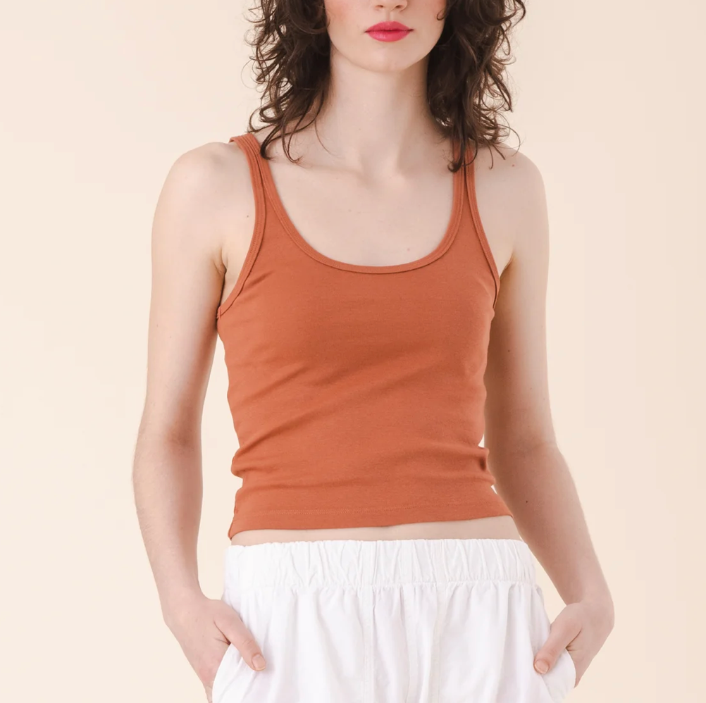 Discover the perfect blend of style and sustainability with our Prairie Underground Short & Sweet Tank. Crafted from premium organic cotton babyrib, this tank features a fitted body that conforms to your shape, along with narrow straps and a scooped neckline for a romantic silhouette. Versatile and elegant, it pairs effortlessly with high-rise pants and can be worn on its own or layered under a blazer. Made in Seattle, USA.